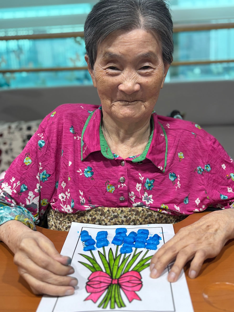 어르신들께서는 작은 조각을 손끝으로 집어 붙이는 과정을 통해 소근육 운동과 집중력 향상에 도움을 받으셨습니다.