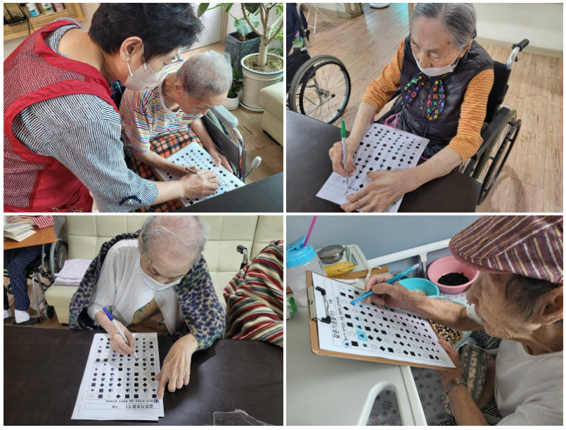 기본적으로는 어르신들의 인지 수준에 맞춰 숫자가 적은 도안과 많은 도안을 나누어 드렸으나